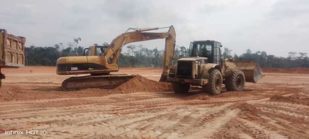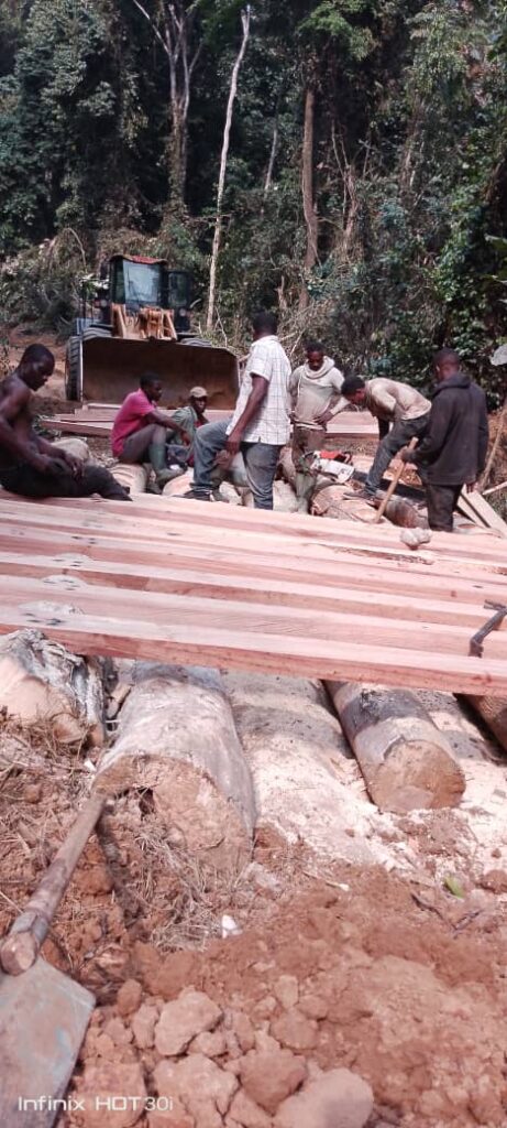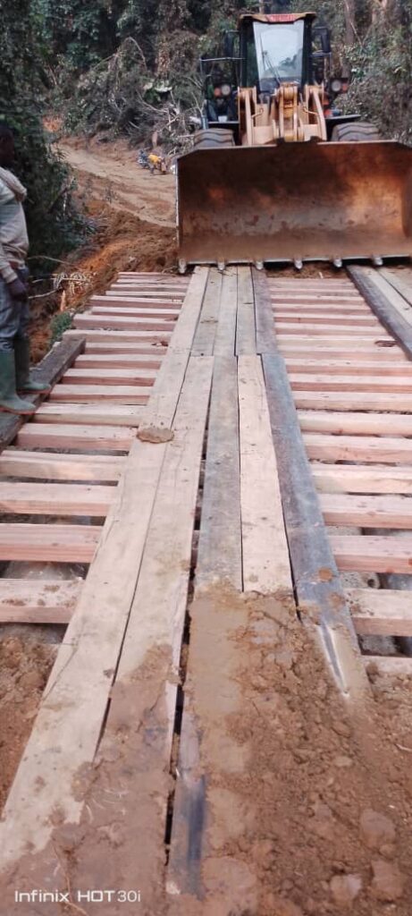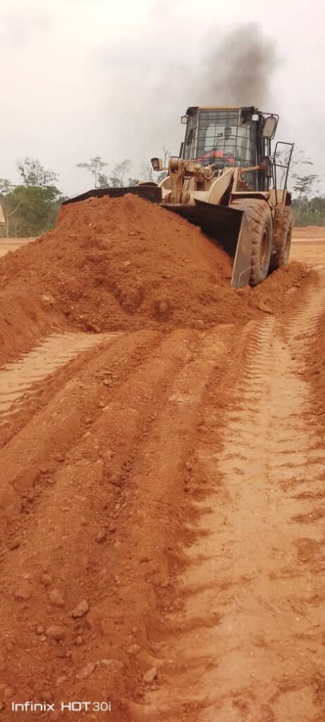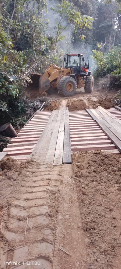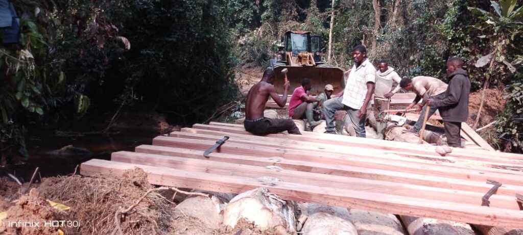 Travaux piste cacaoyers – Effoulan, Ebolowa : Réalisation et entretien de pistes agricoles facilitant l’accès aux plantations de cacaoyers, optimisant le transport des récoltes et améliorant l’accessibilité des exploitations rurales.