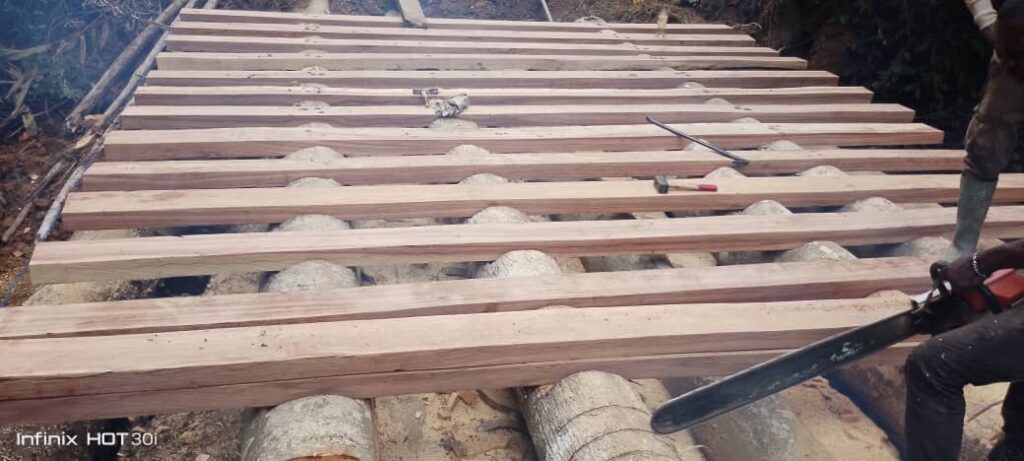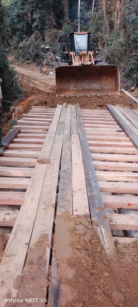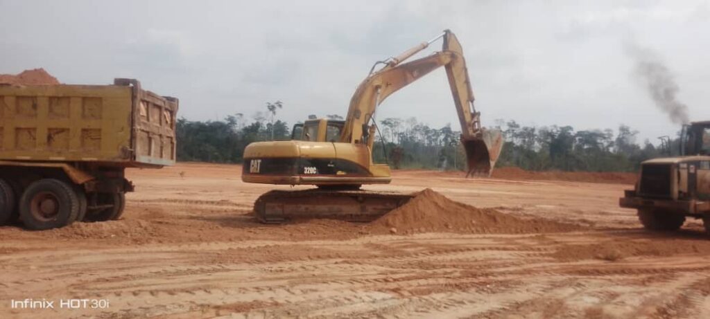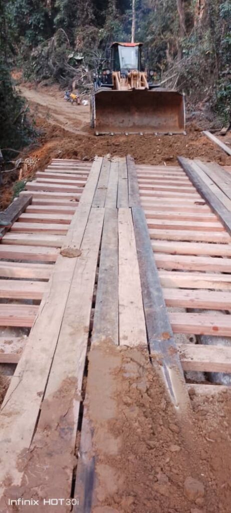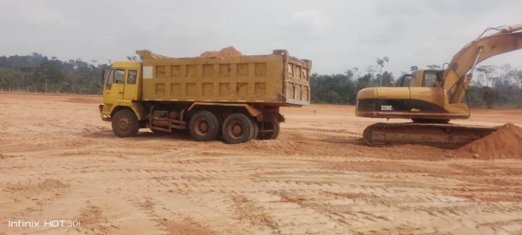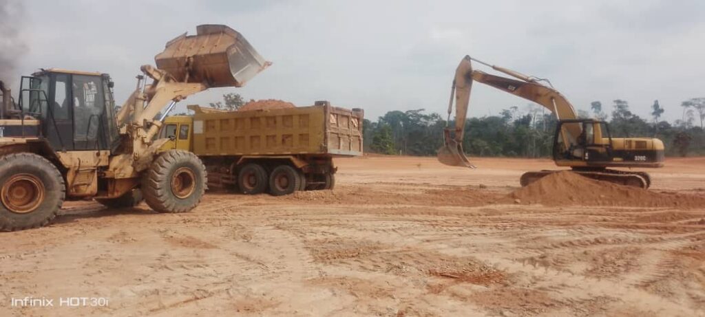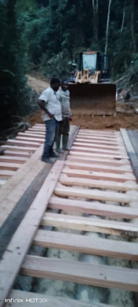 Travaux piste cacaoyers – Effoulan, Ebolowa : Réalisation et entretien de pistes agricoles facilitant l’accès aux plantations de cacaoyers, optimisant le transport des récoltes et améliorant l’accessibilité des exploitations rurales.